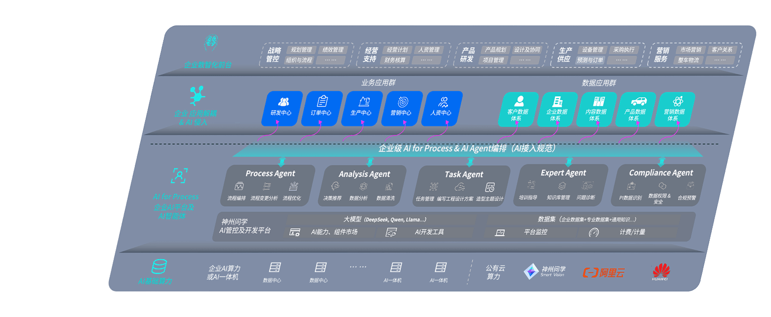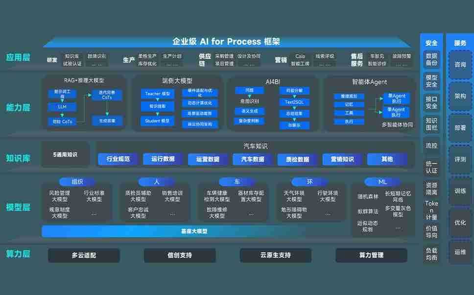 端到端的一站式AI工作空间深度融合了从企业战略规划到日常经营的全流程业务板块,,,,定向解决车企内部领域多、、部门多、、链条长、、、、场景碎片化等难题,,,支持车企快速构建以AI为核心的生产力写作体系,,,实现任务执行与AI能力的无缝集成与交互